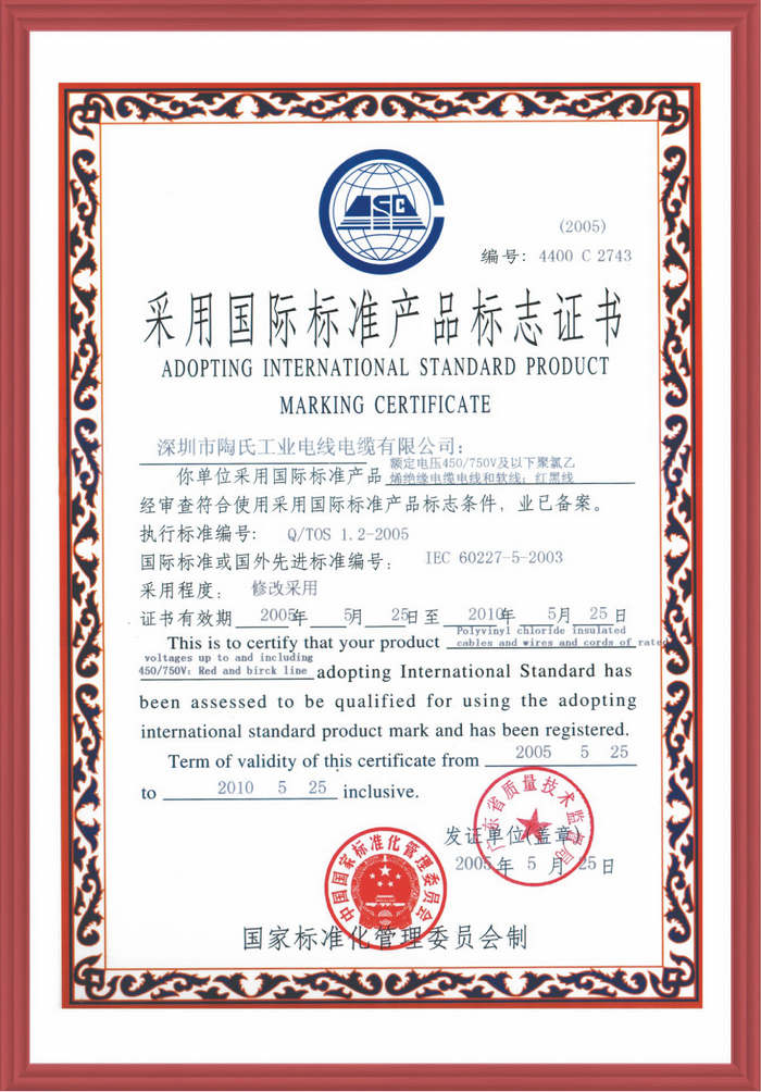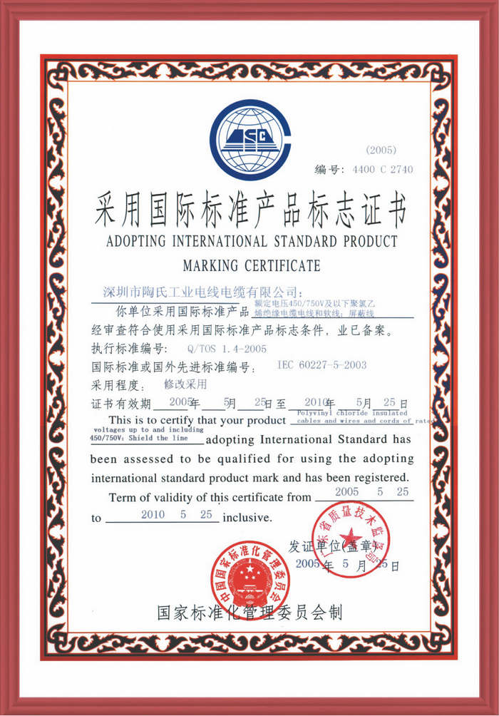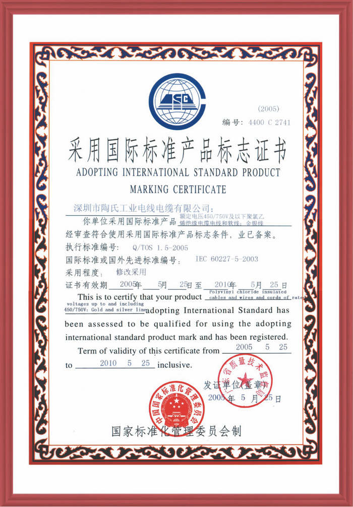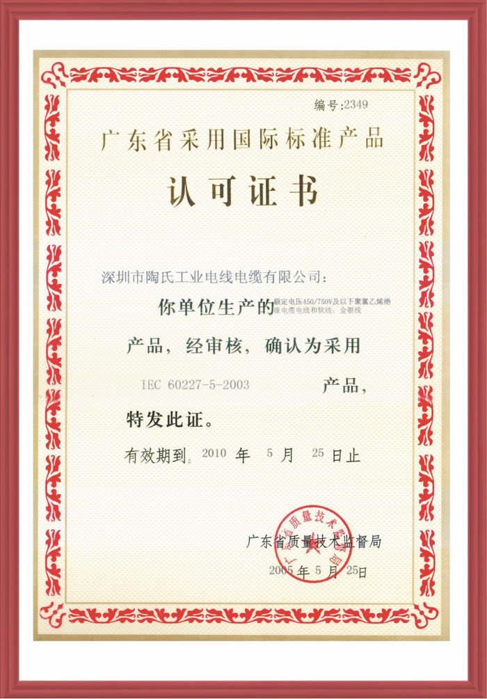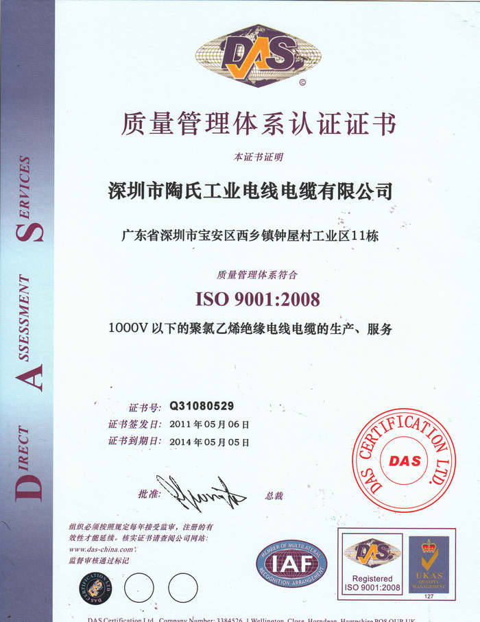 陶氏工業(yè)電線(xiàn)電纜有限公司自成立到現(xiàn)在榮獲多種證書(shū)